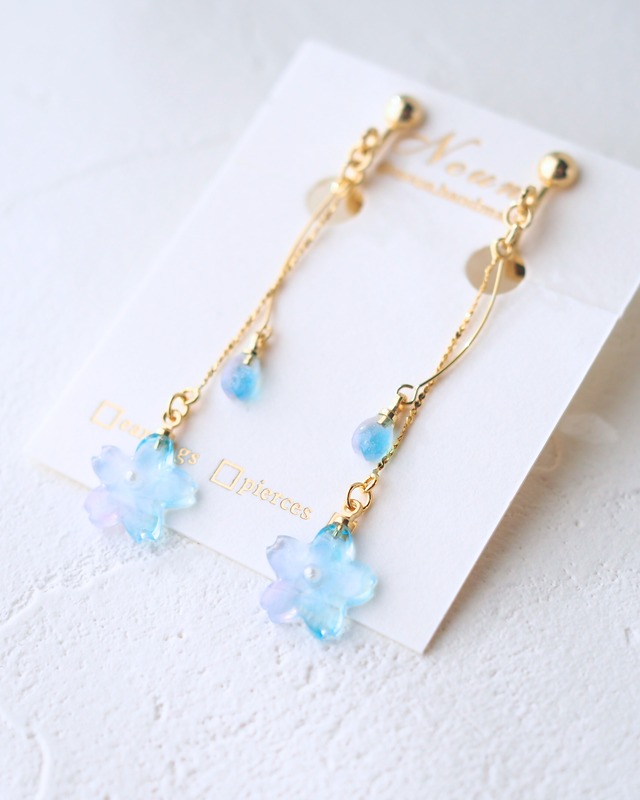 春にじむ桜 [金具選択可能 樹脂ノンホールピアス / イヤリング / チタンピアス / 樹脂ピアス ]青 水色 さくら 花 上品 大人 控えめ シンプル 透明 クリア お花見 春 レジン 揺れる 金属アレルギー対応 チタンキャッチ