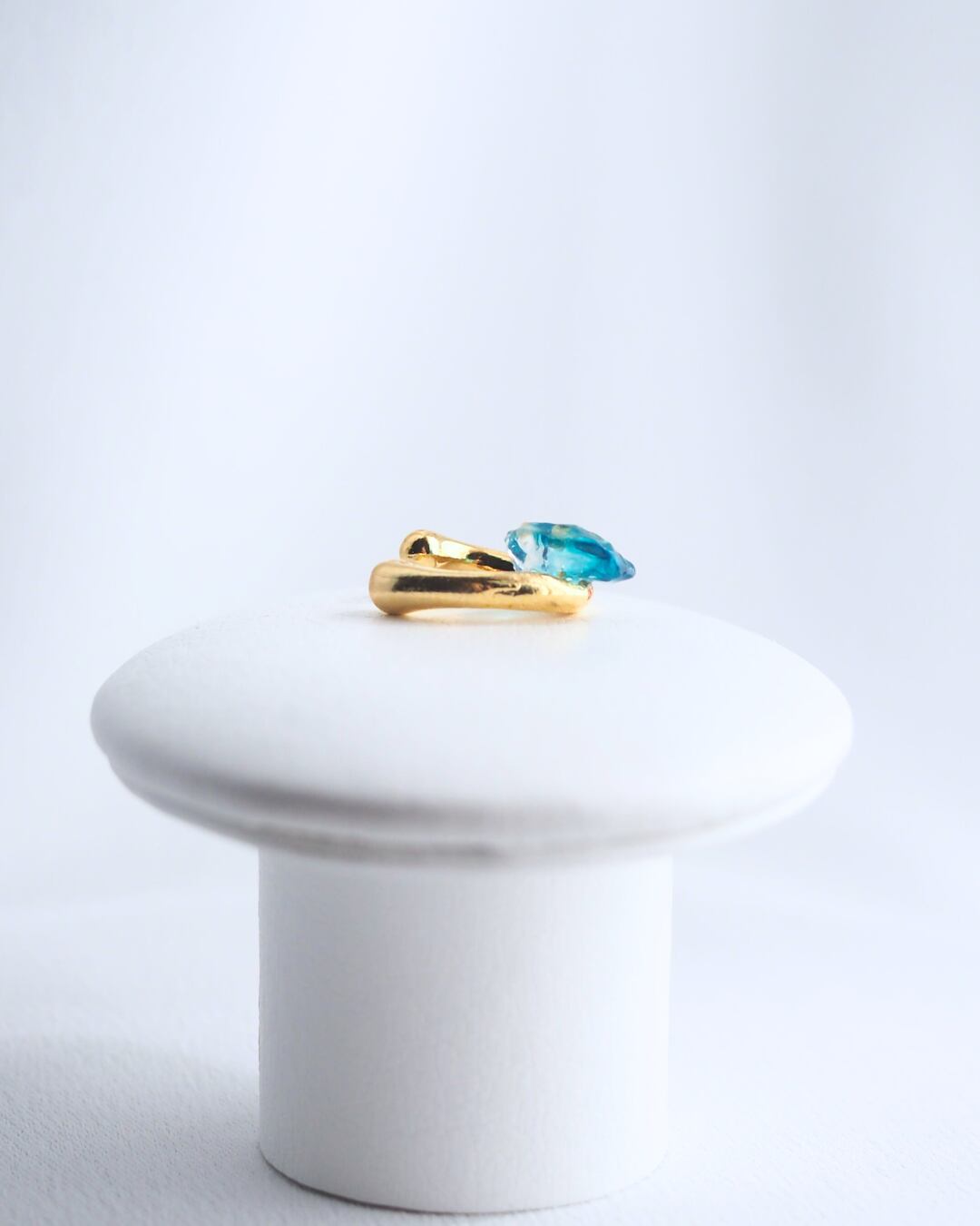 少しだけ粗さを残した鉱物と、青と透明のグラデーションで