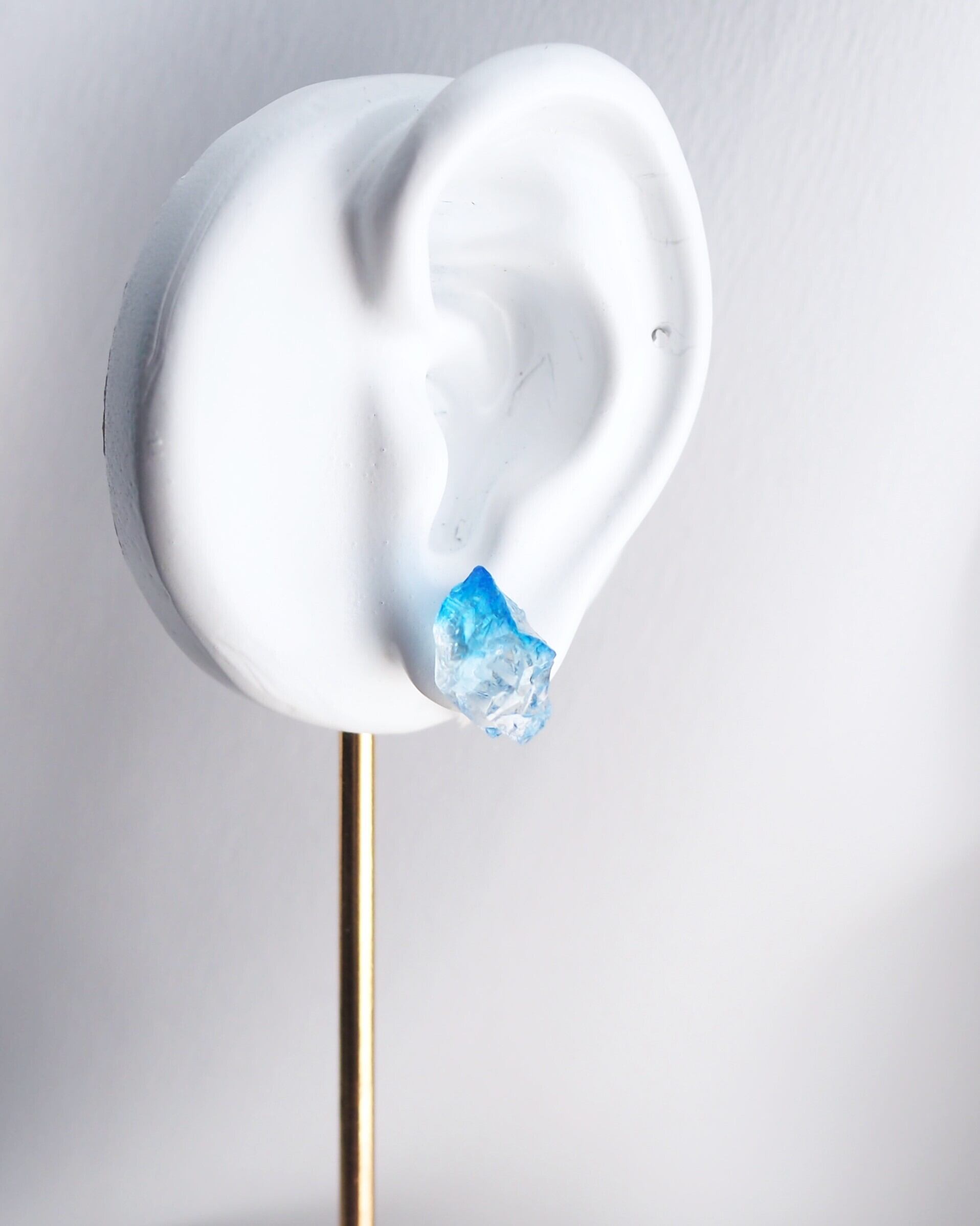 浅瀬の海をイメージした青とクリアを緩やかにグラデーションさせた、鉱物のようなシンプルなデザイン