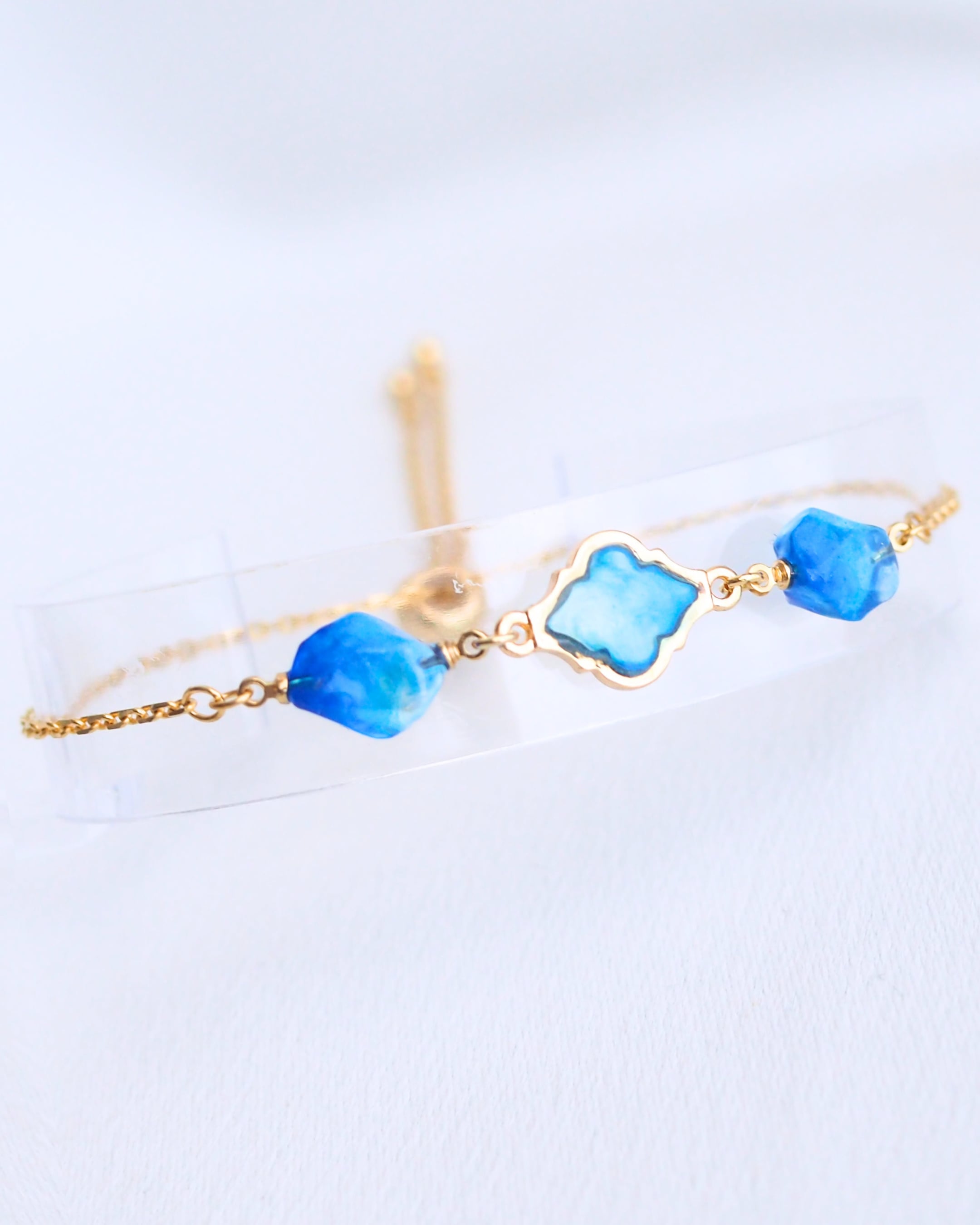着脱や長さ調節が簡単なスライダー式のブレスレットです。