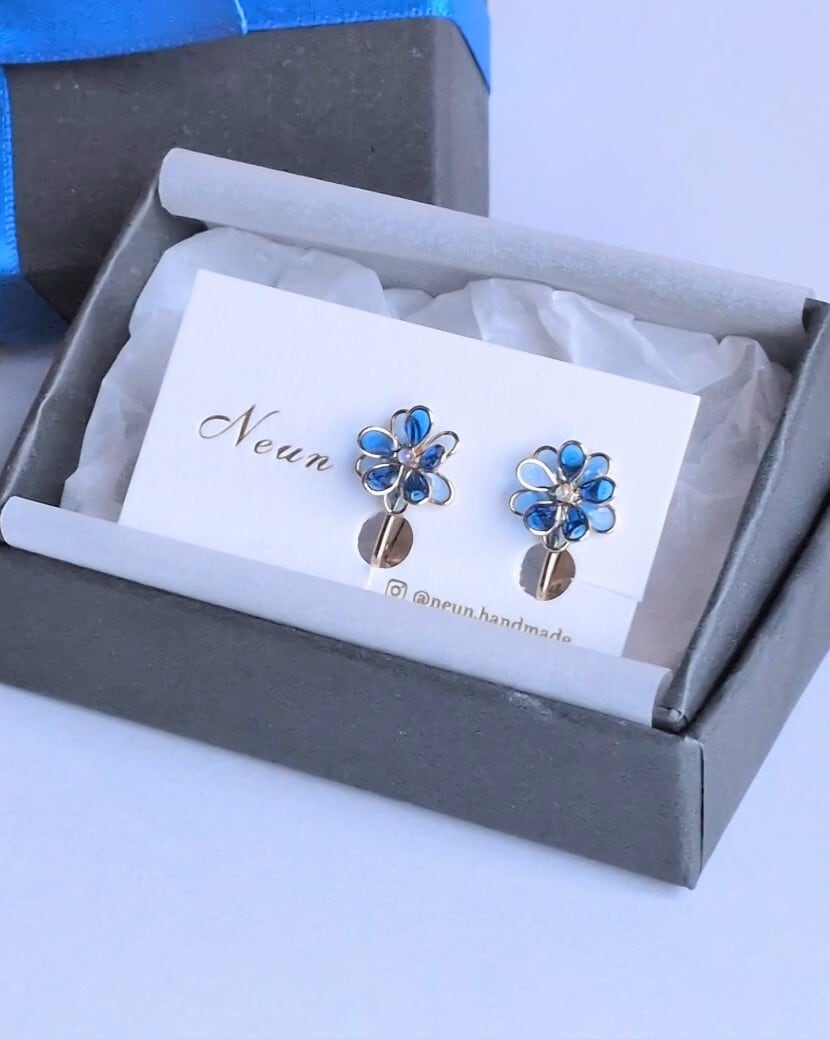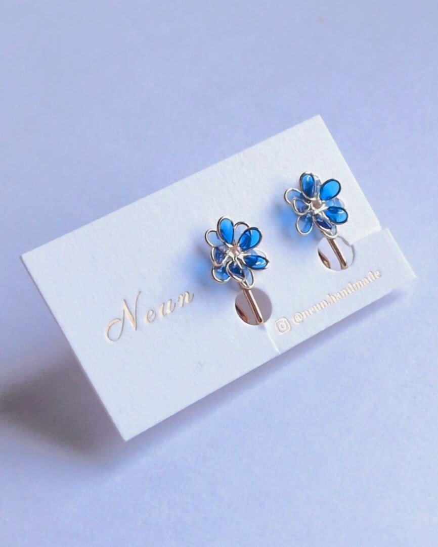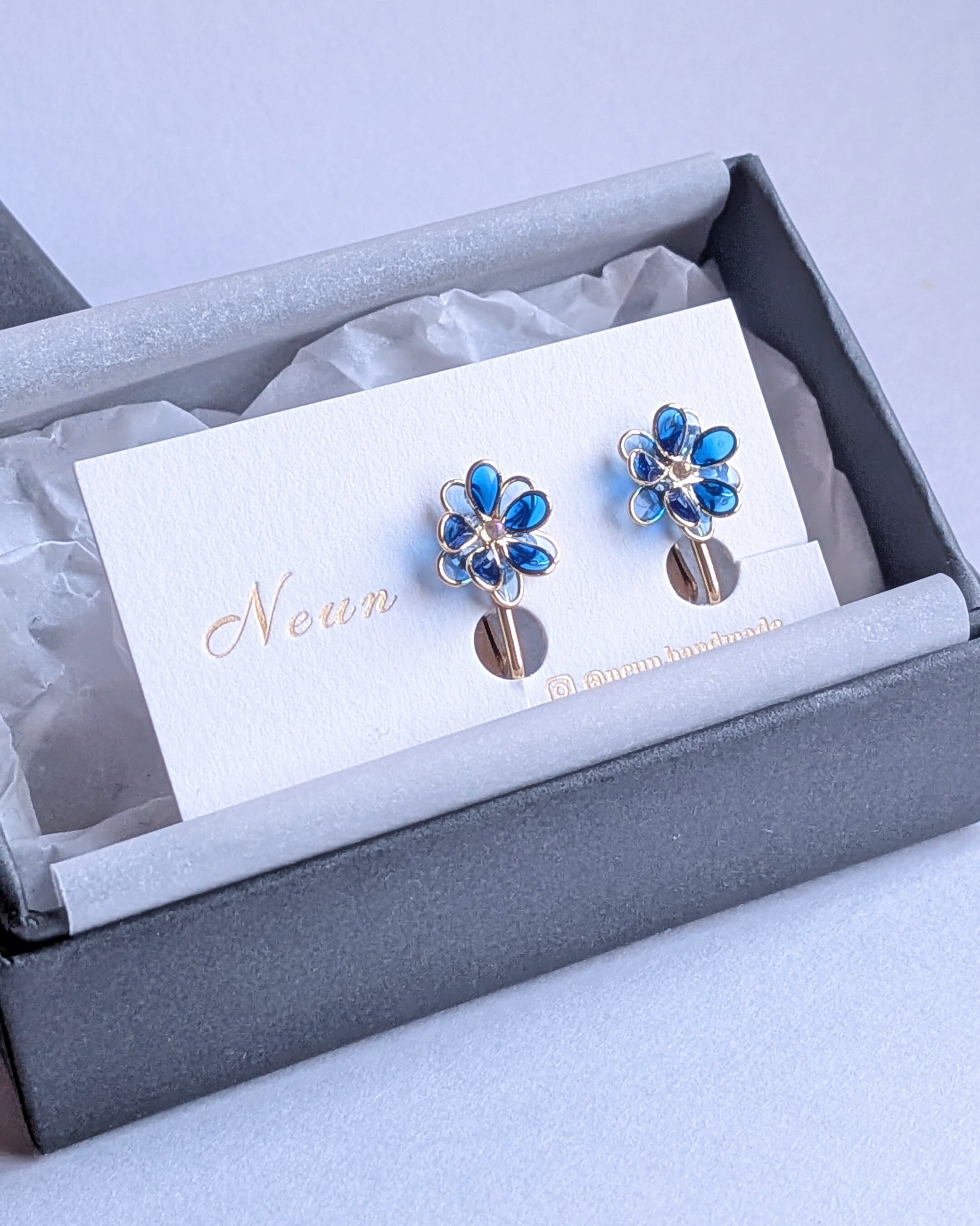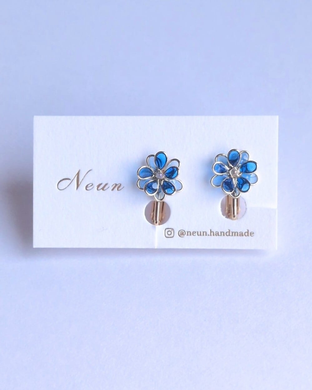 透き通る青色が美しい、八重咲きのお花モチーフのイヤリング