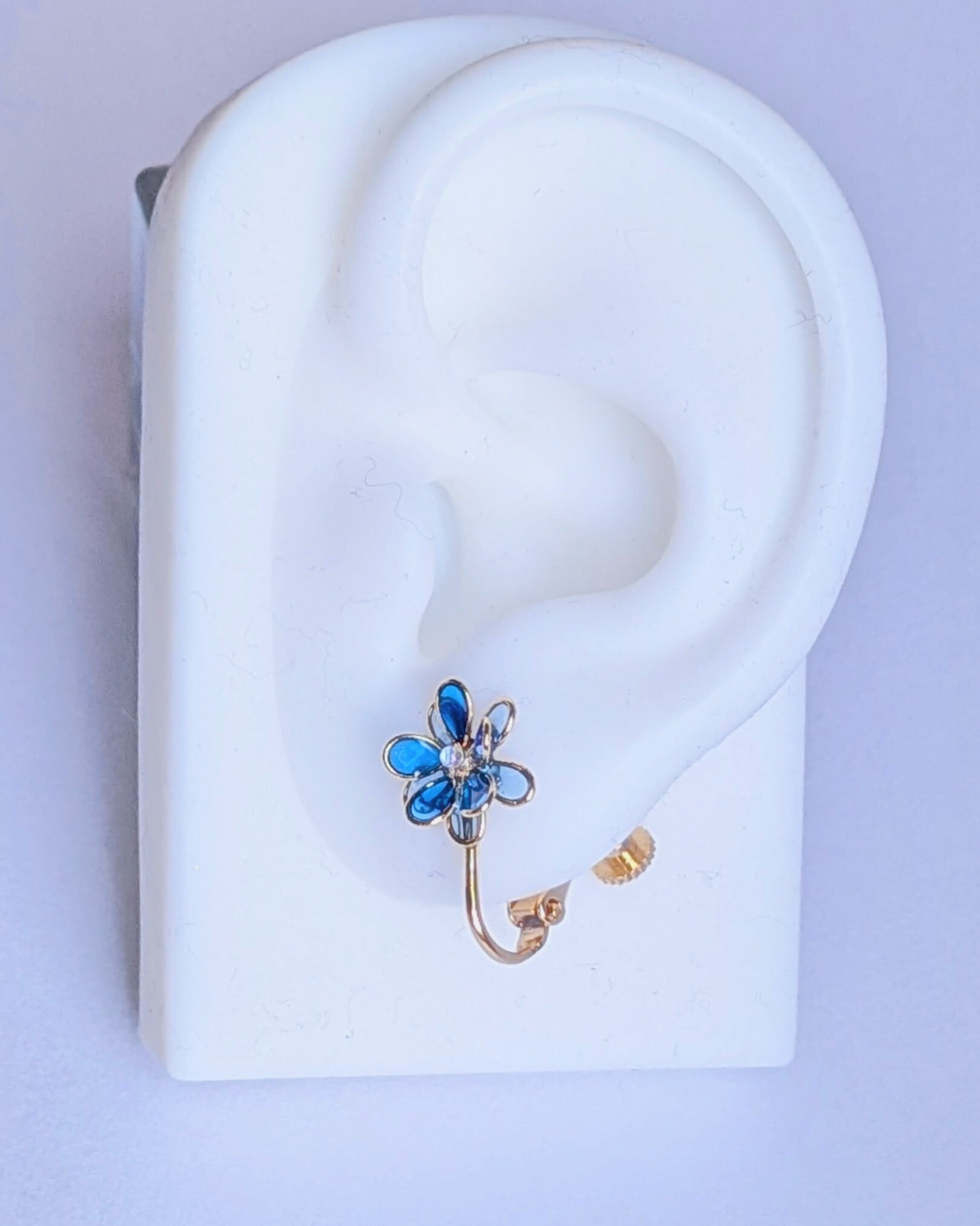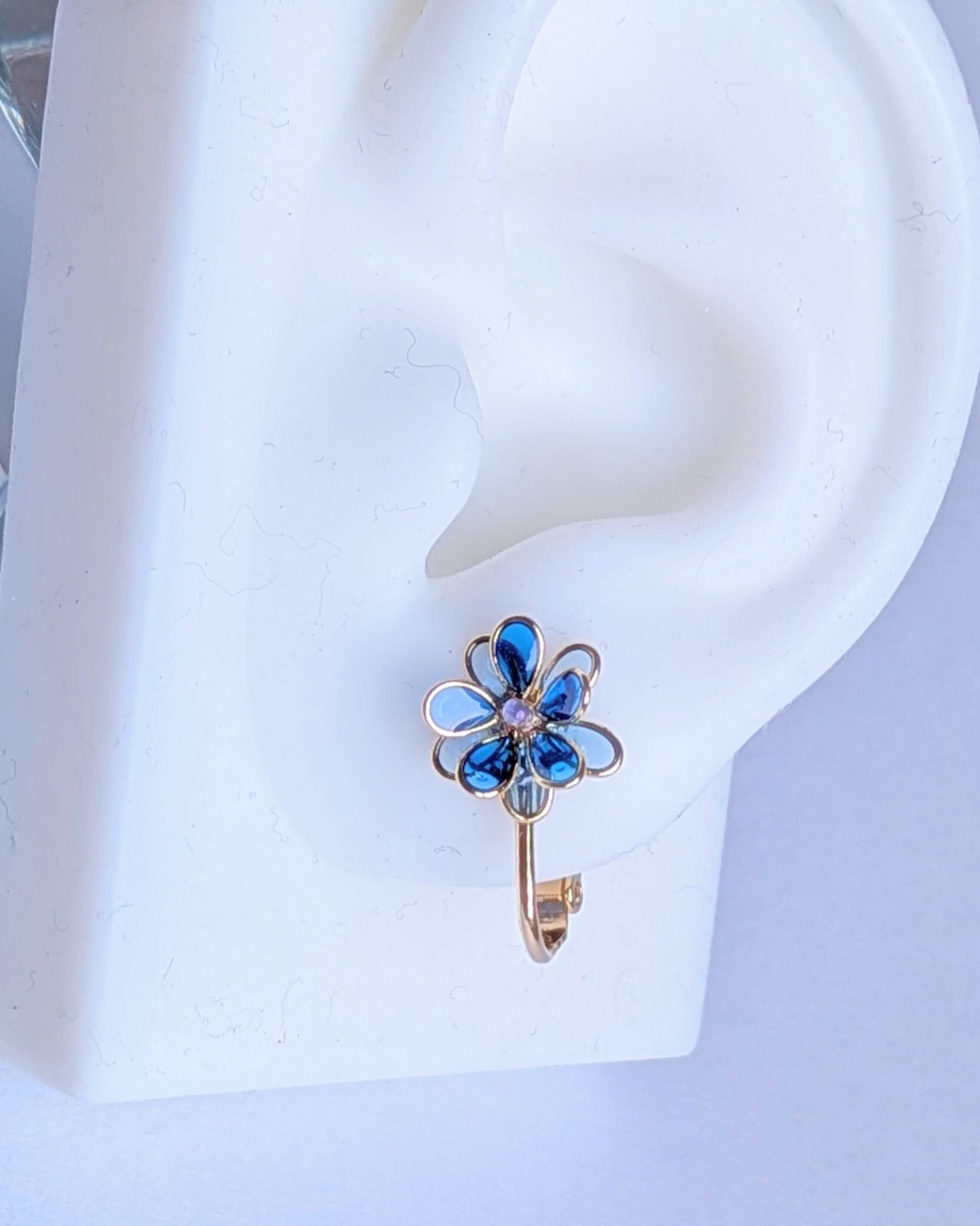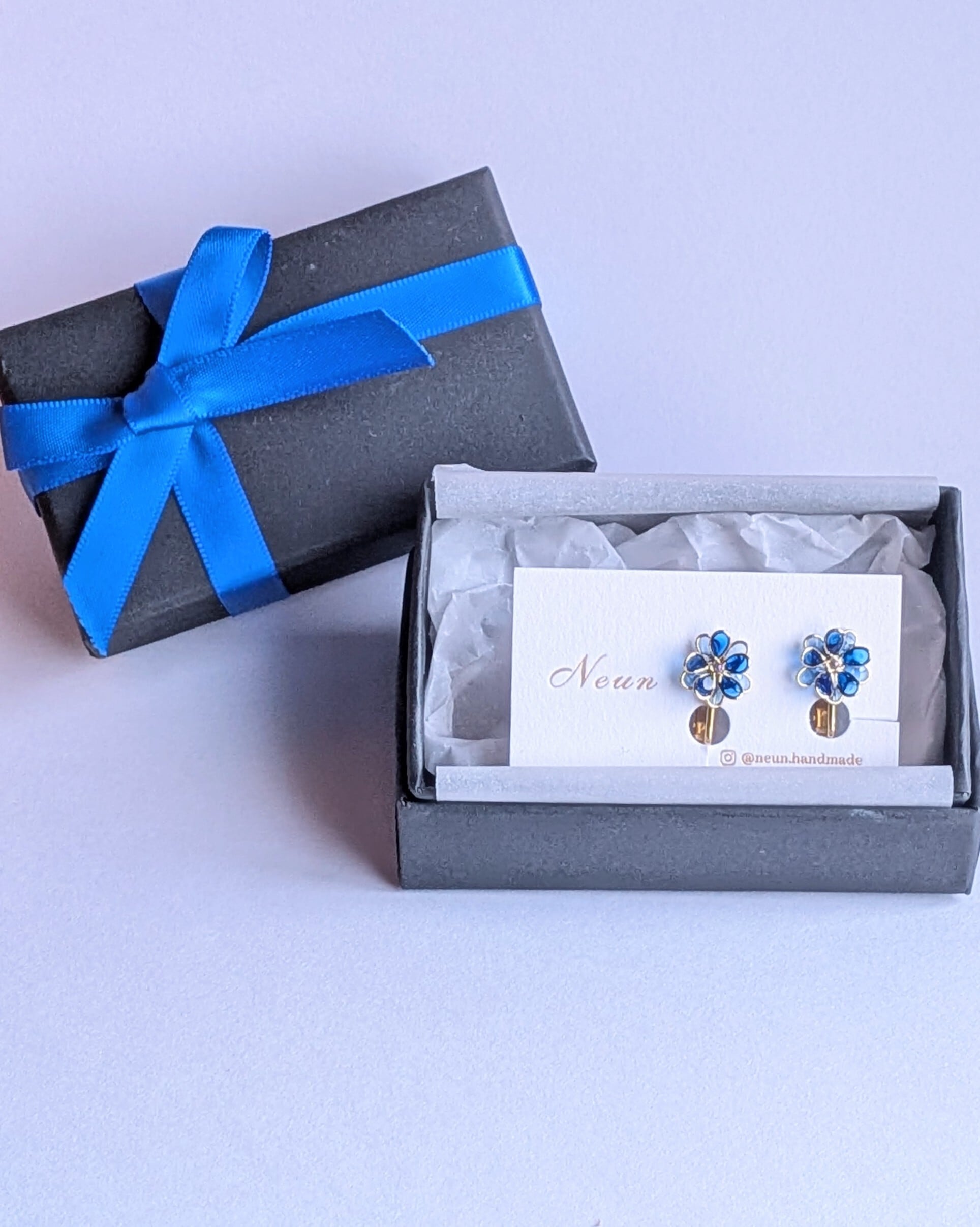 透き通る青色が美しい、八重咲きのお花モチーフのイヤリング