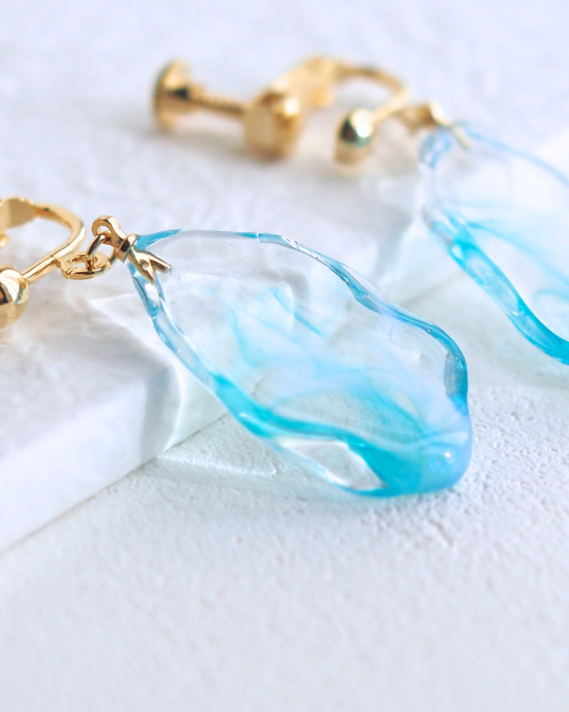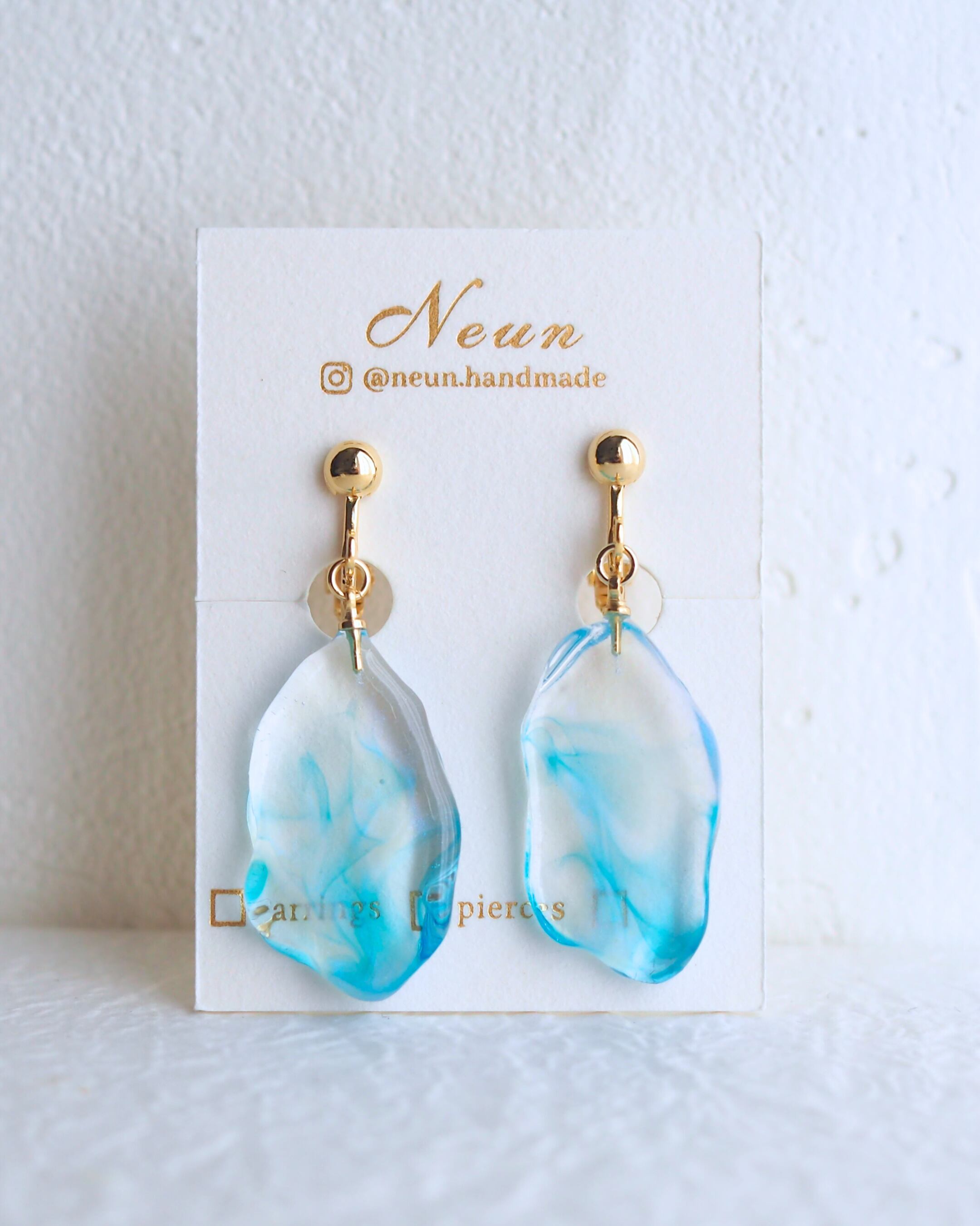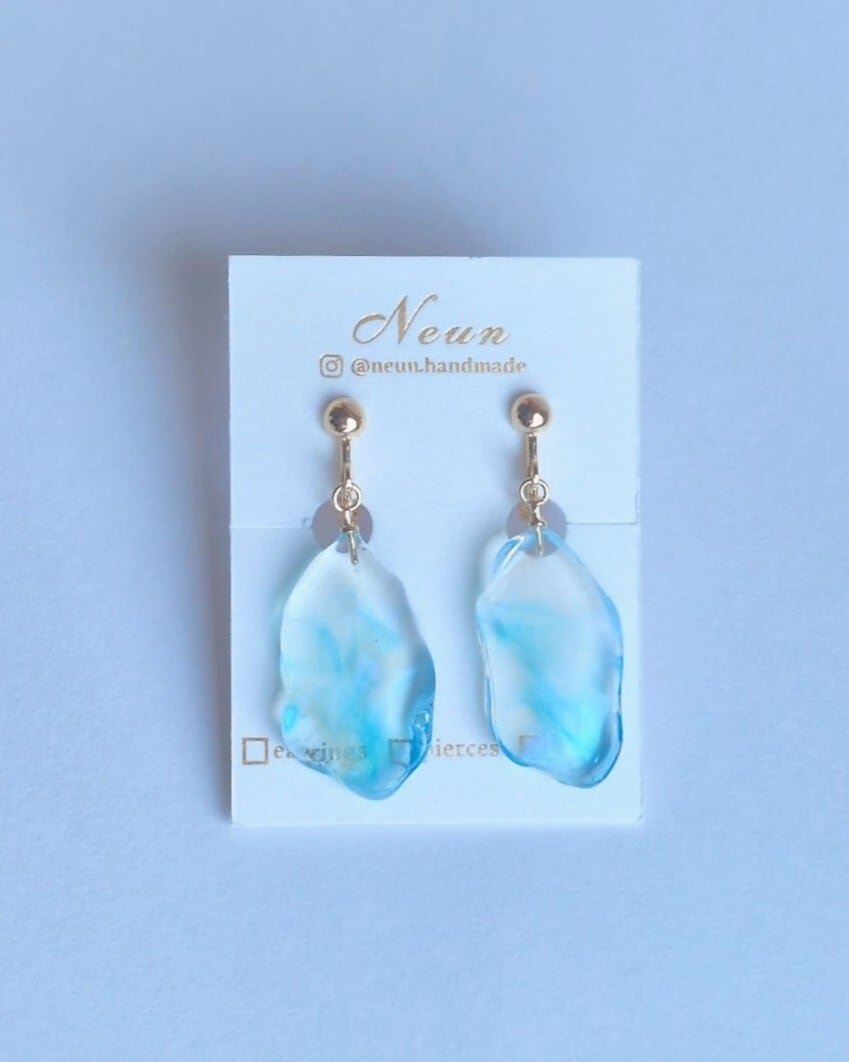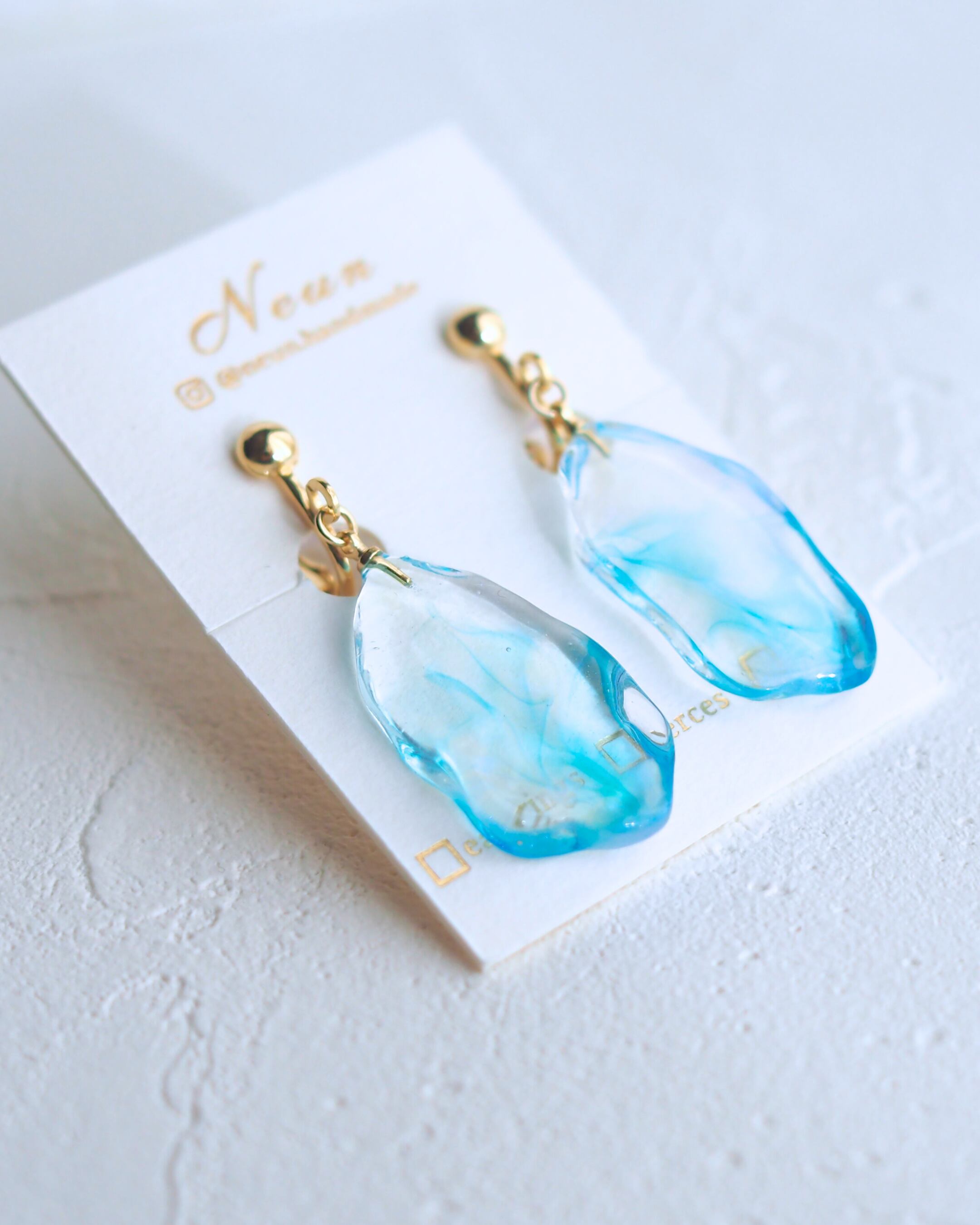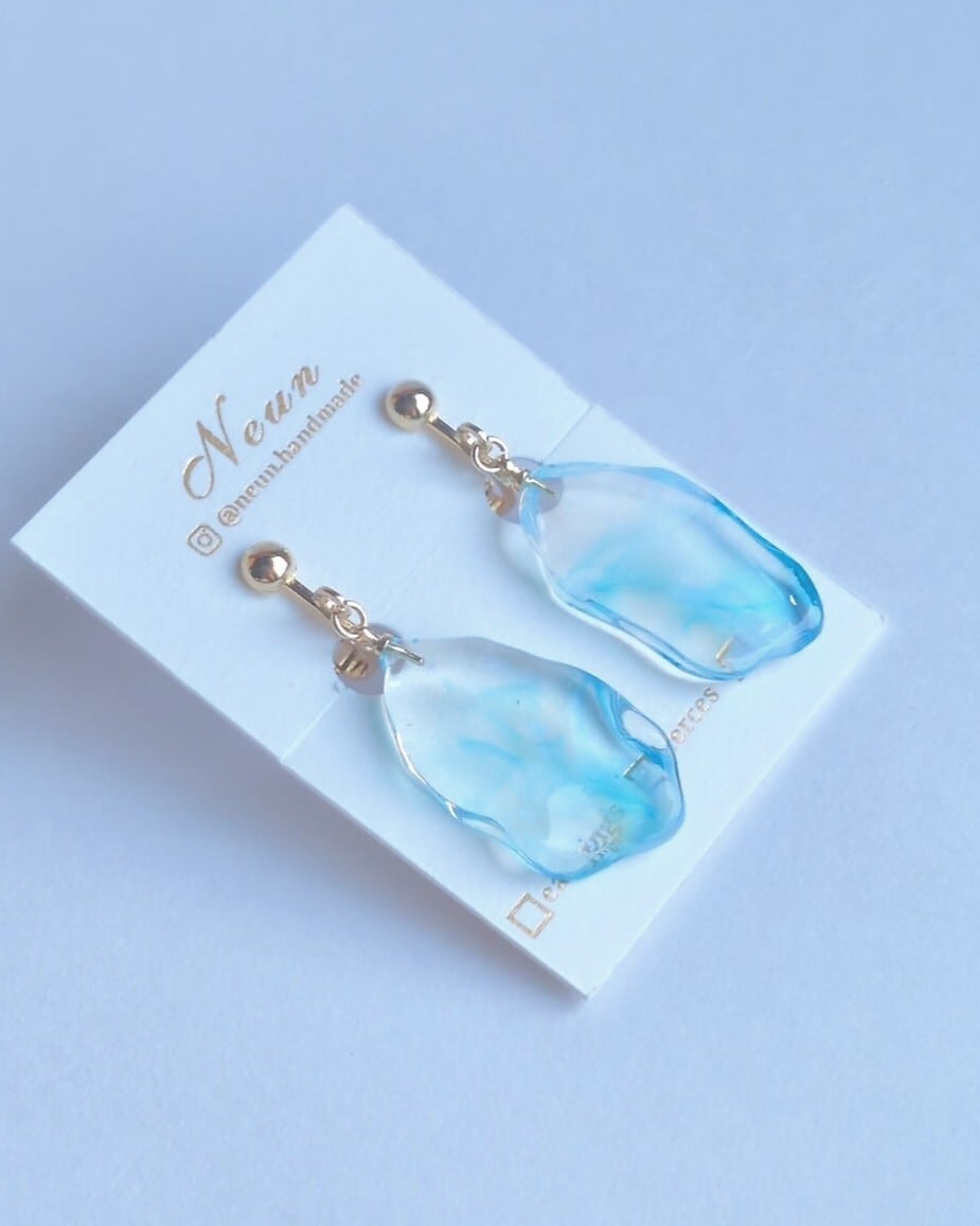 冬の朝の湖面 [金具選択可能 樹脂ノンホールピアス / イヤリング / チタンピアス / 樹脂ピアス ]青 水色 上品 大人 控えめ シンプル 透明 クリア 冬 雪 春 レジン 揺れる 金属アレルギー対応 チタンキャッチ | Neun