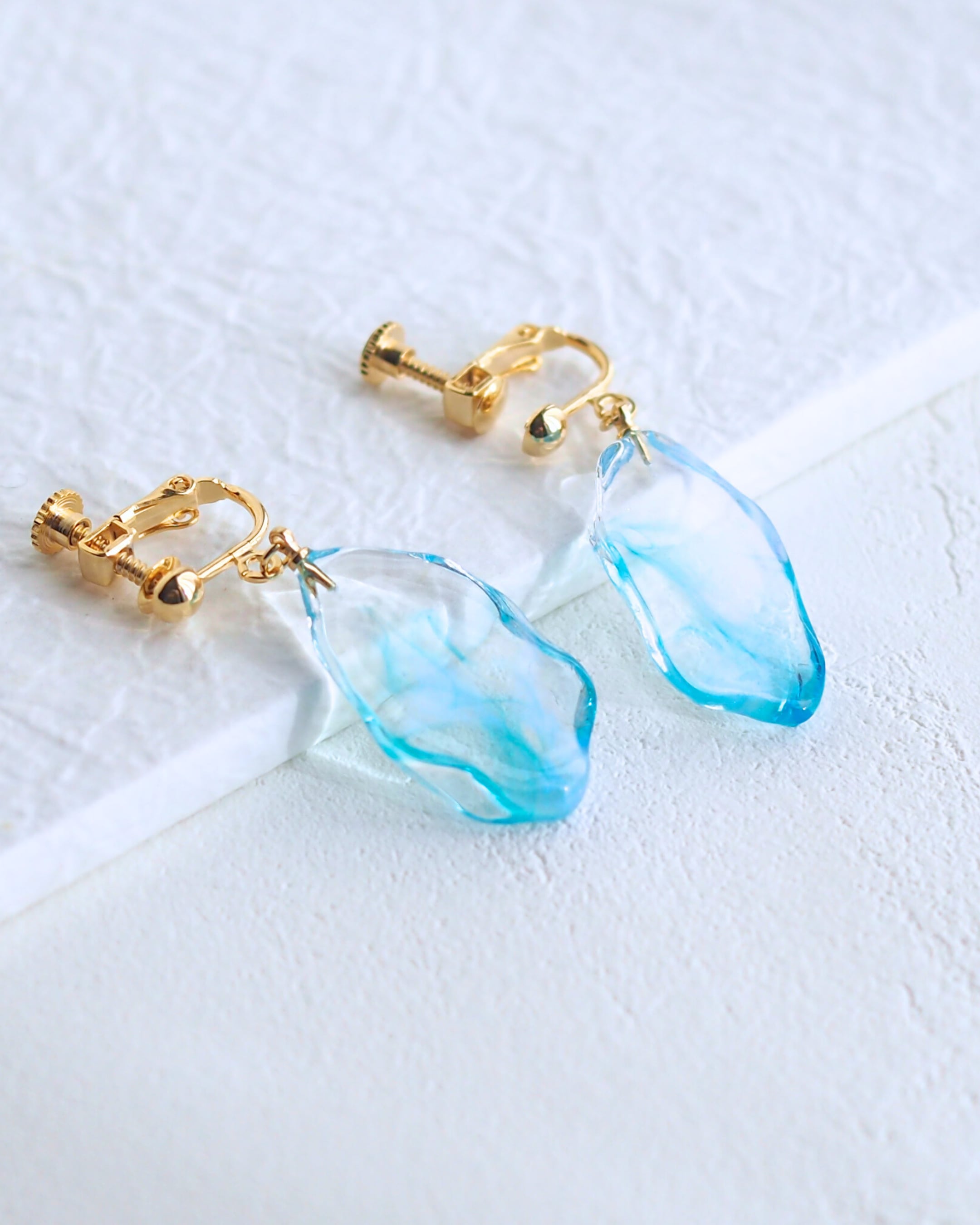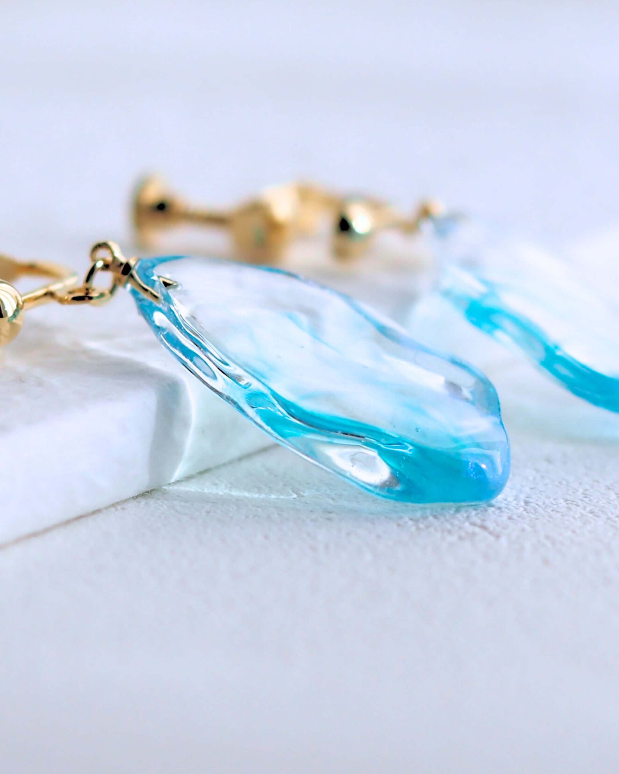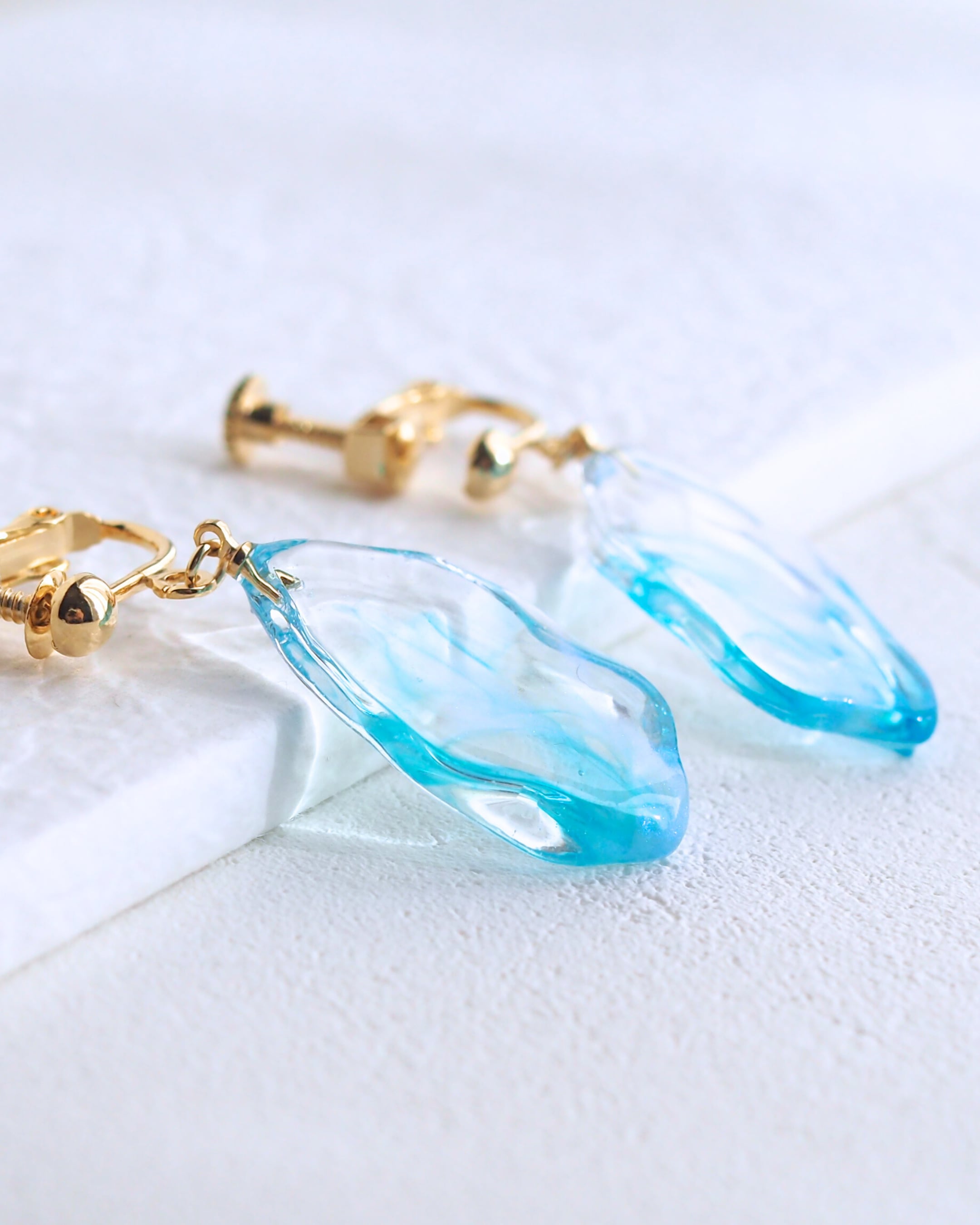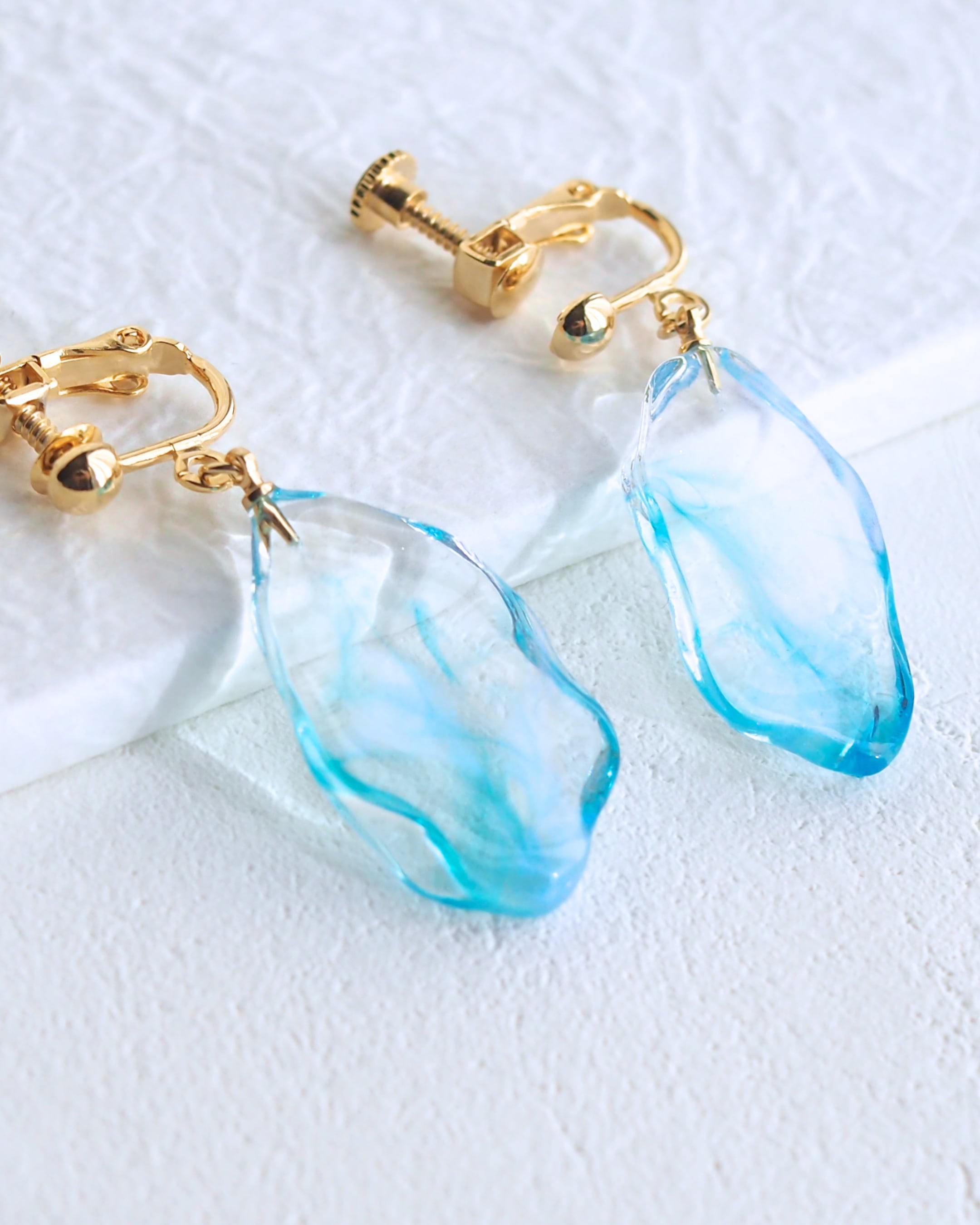 冬の朝の湖面 [金具選択可能 樹脂ノンホールピアス / イヤリング / チタンピアス / 樹脂ピアス ]青 水色 上品 大人 控えめ シンプル 透明 クリア 冬 雪 春 レジン 揺れる 金属アレルギー対応 チタンキャッチ | Neun