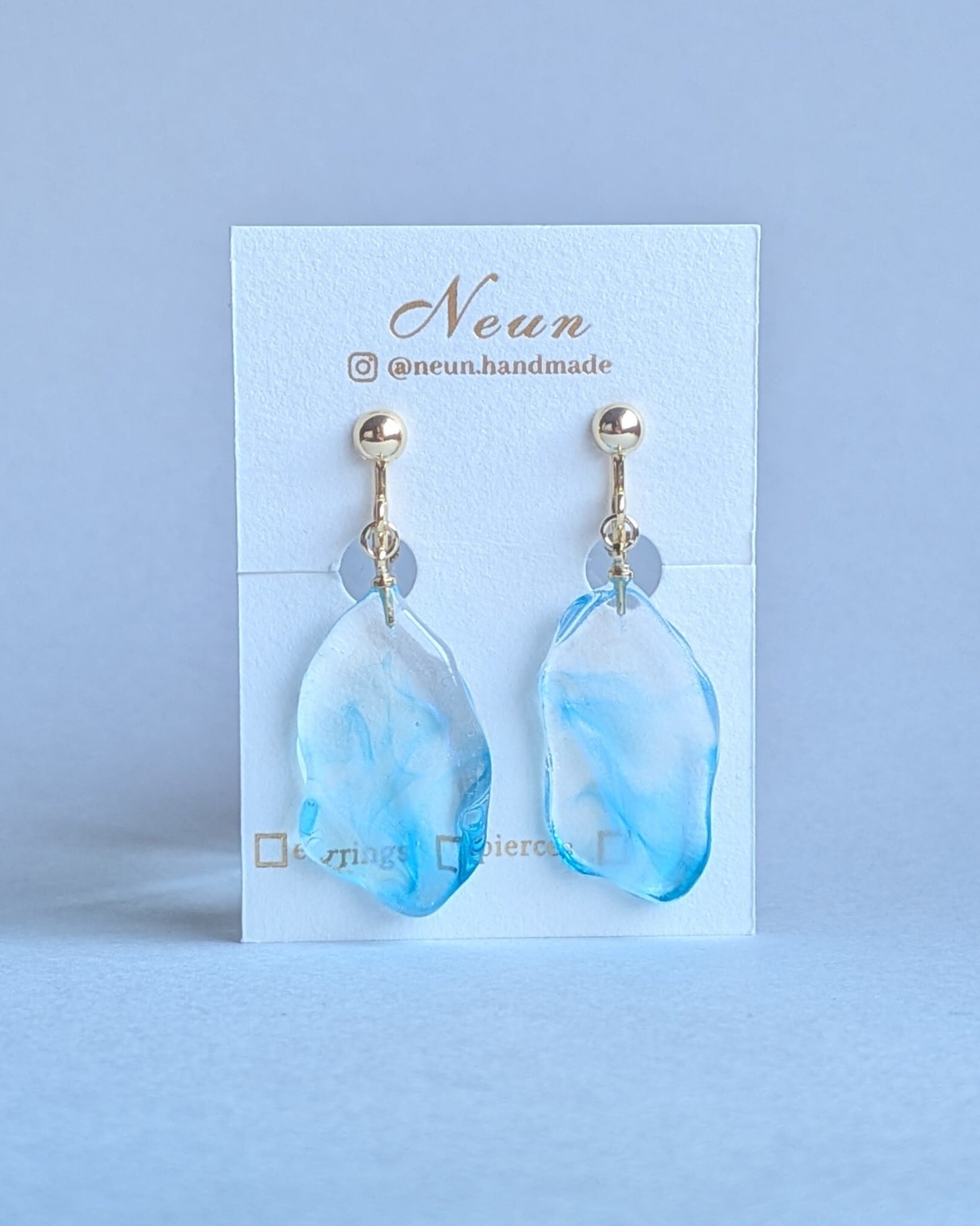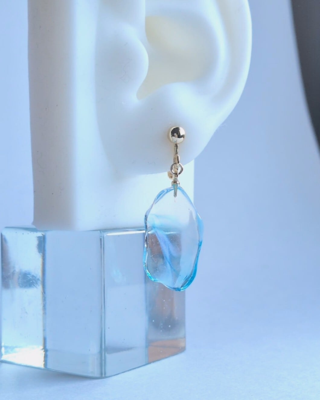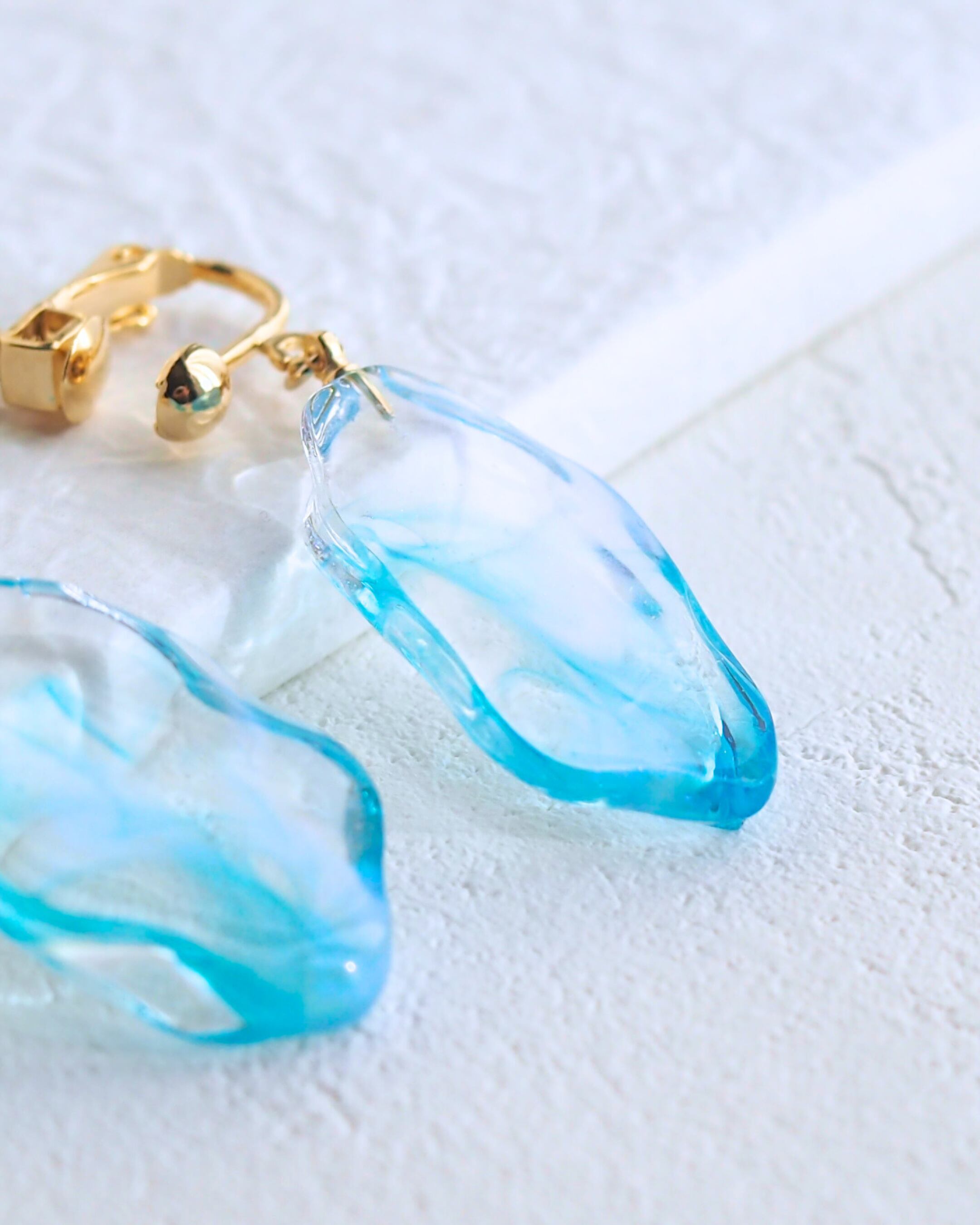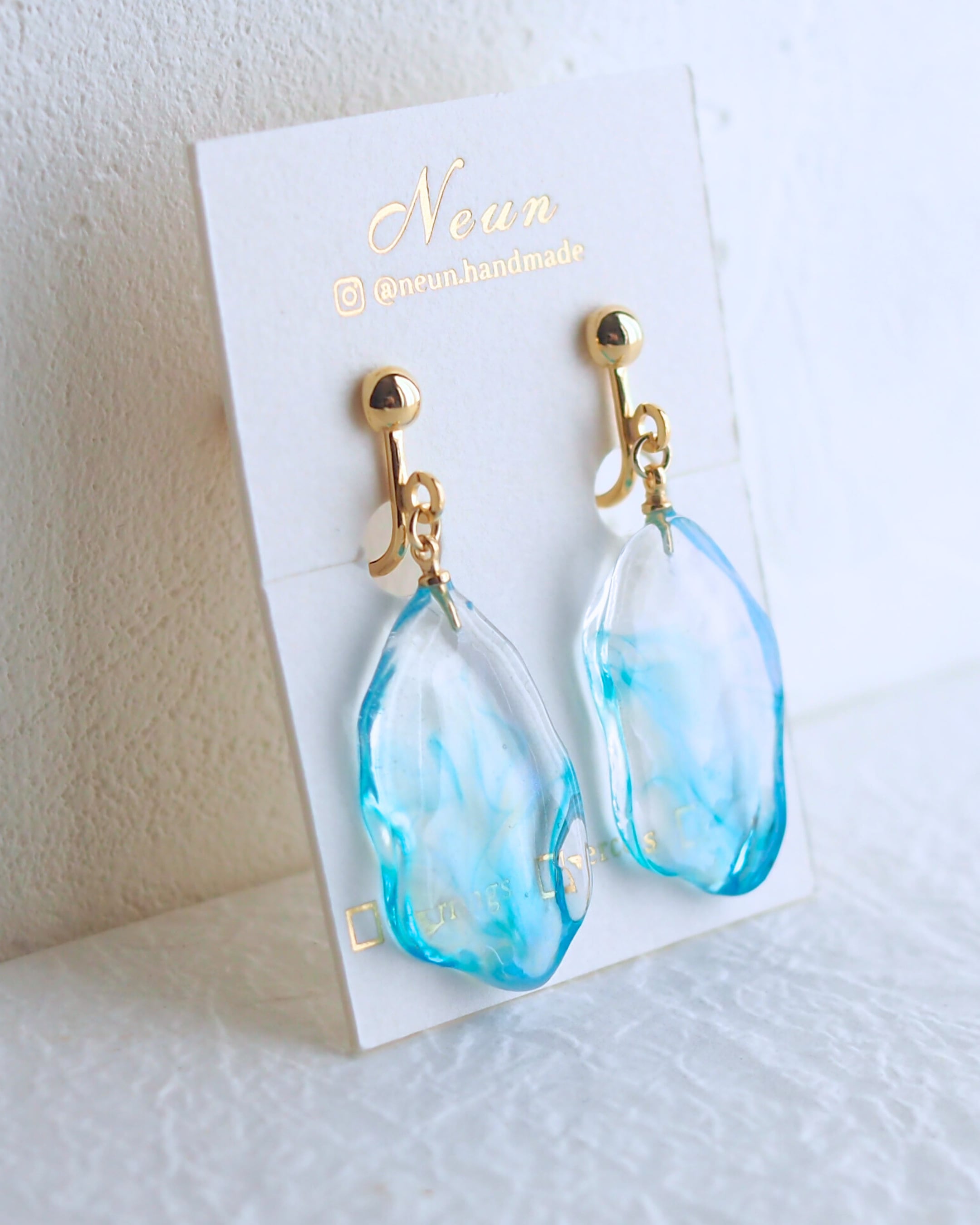 冬の朝の湖面 [金具選択可能 樹脂ノンホールピアス / イヤリング / チタンピアス / 樹脂ピアス ]青 水色 上品 大人 控えめ シンプル 透明 クリア 冬 雪 春 レジン 揺れる 金属アレルギー対応 チタンキャッチ | Neun