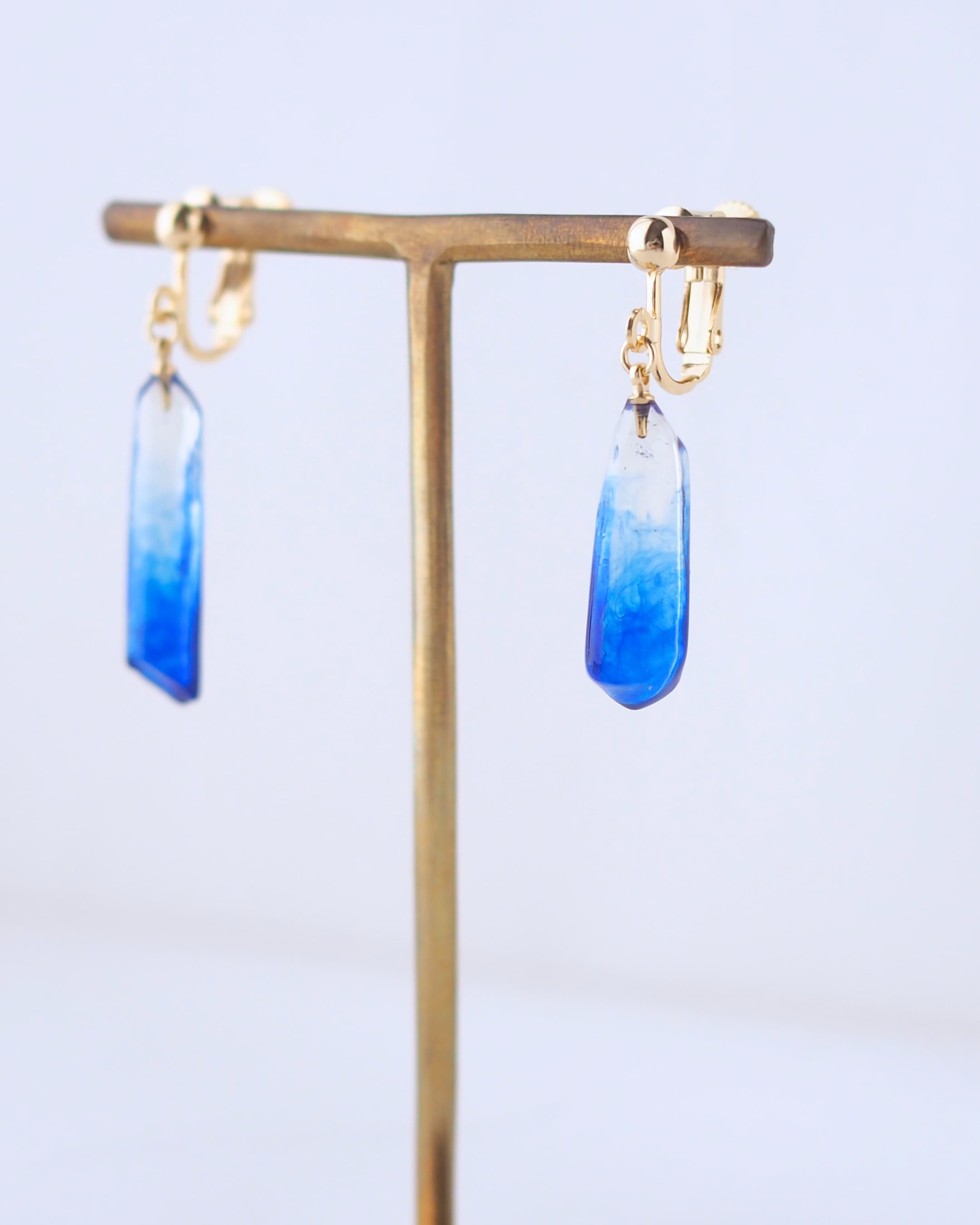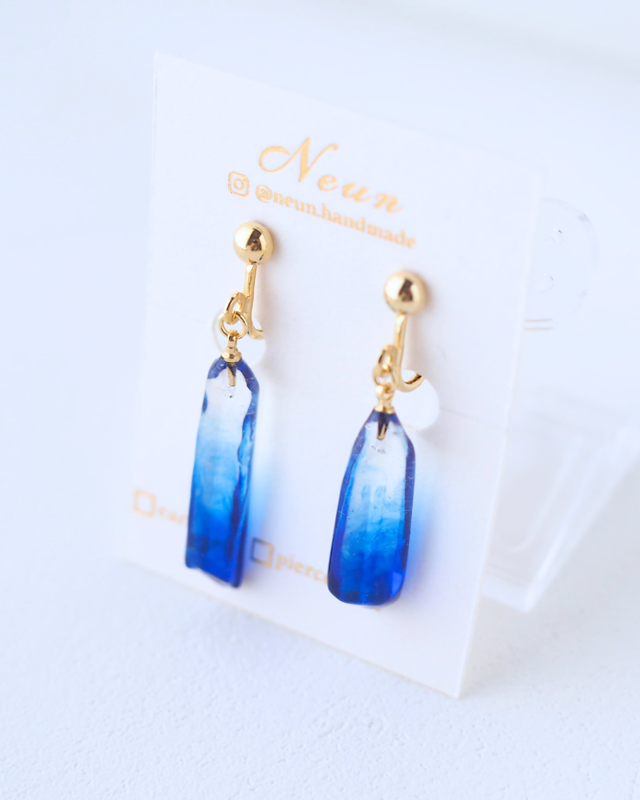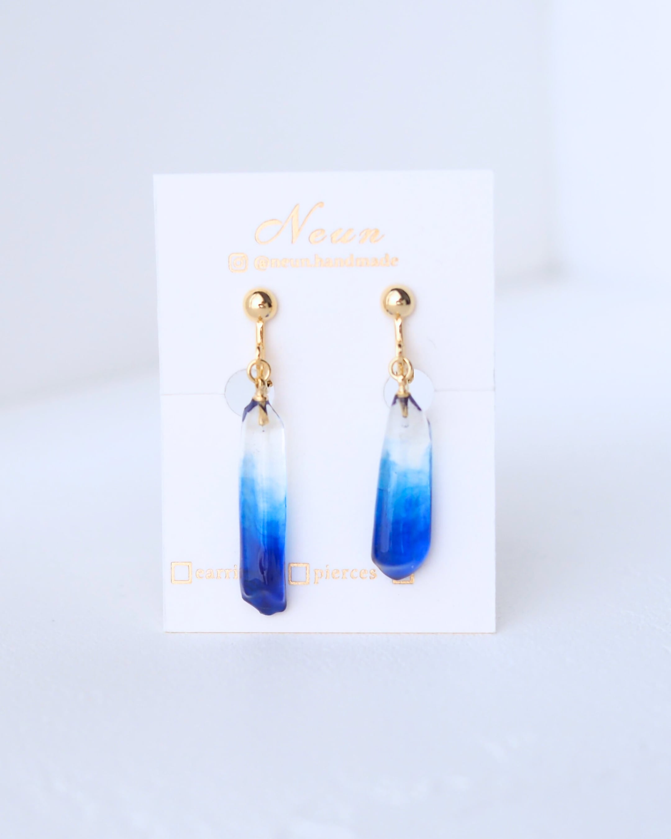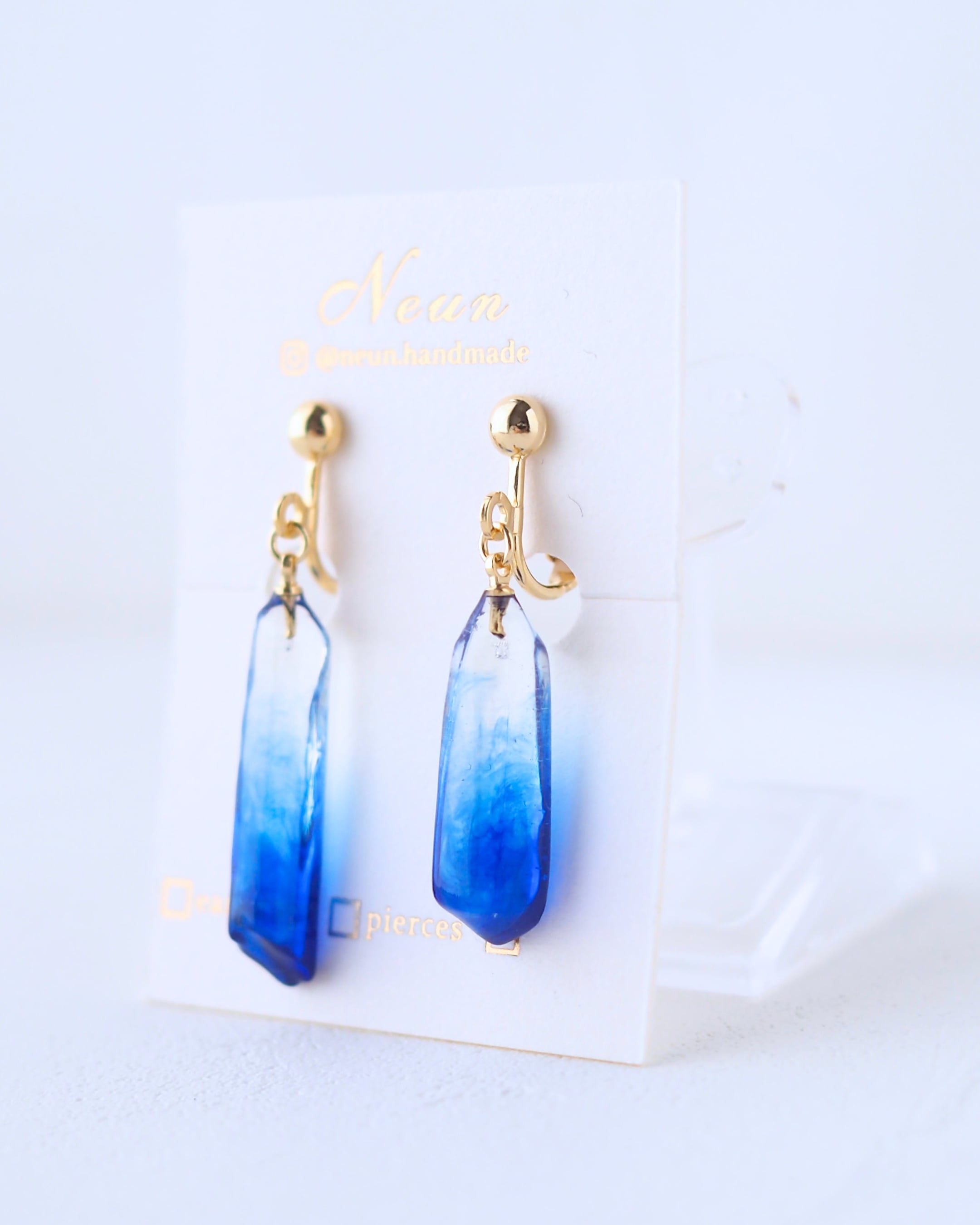海の鉱物 [ 樹脂ノンホールピアス / イヤリング / チタンピアス / 樹脂ピアス ] 海 青 水色 上品 大人 控えめ シンプル 透明 クリア 冬 春 レジン 揺れる 金属アレルギー対応 チタンキャッチ | Neun