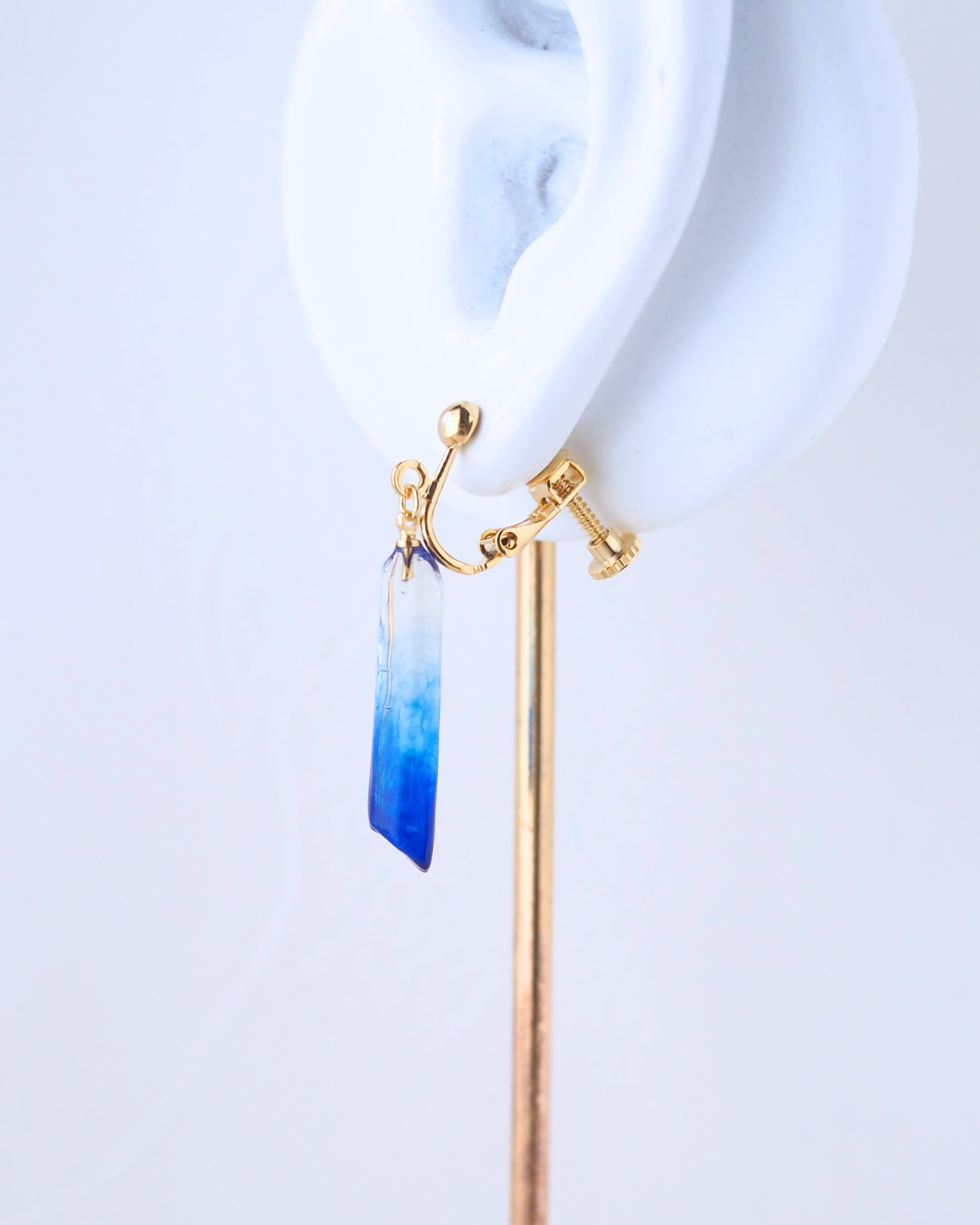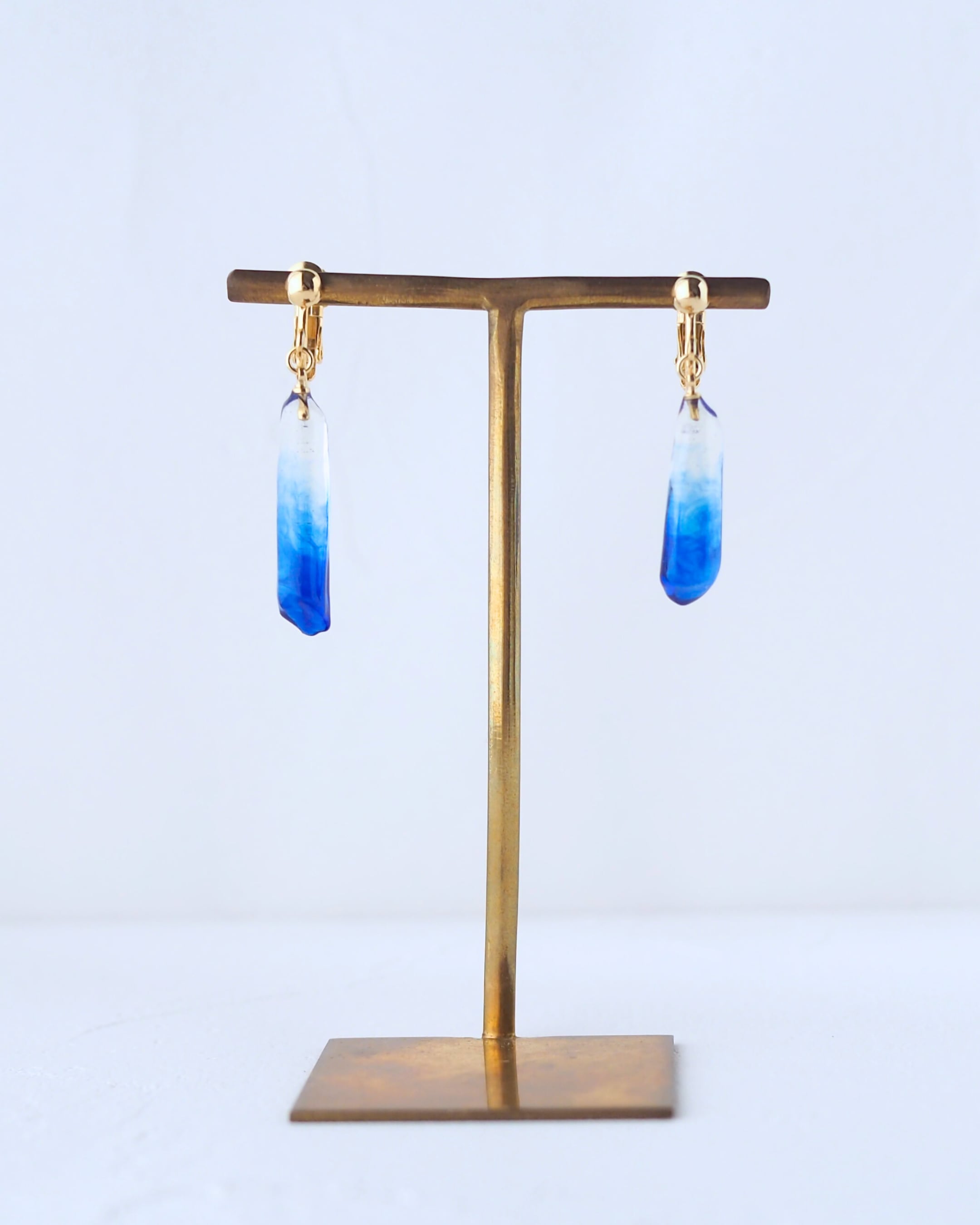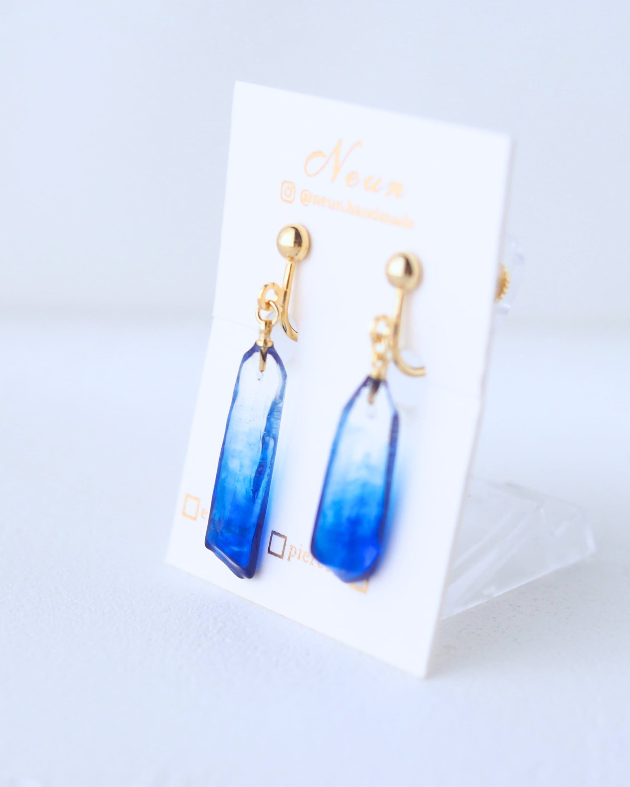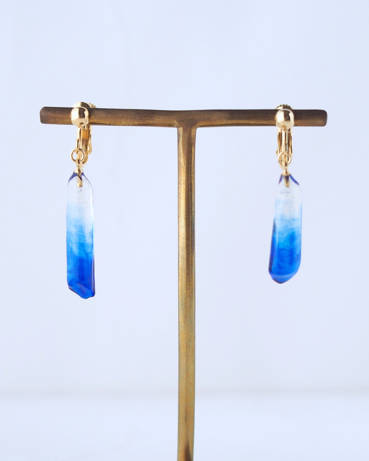 海の鉱物 [ 樹脂ノンホールピアス / イヤリング / チタンピアス / 樹脂ピアス ] 海 青 水色 上品 大人 控えめ シンプル 透明 クリア 冬 春 レジン 揺れる 金属アレルギー対応 チタンキャッチ | Neun