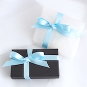 ギフトボックスは下に緩衝材をつめ、台紙にはめた作品をのせ保護用の薄い紙をかぶせます。ボックスは高級感ある黒、リボンは作品に合わせた色でご用意いたします。