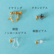 金具はイヤリング、樹脂ノンホールピアス、チタンピアス、樹脂ピアスの