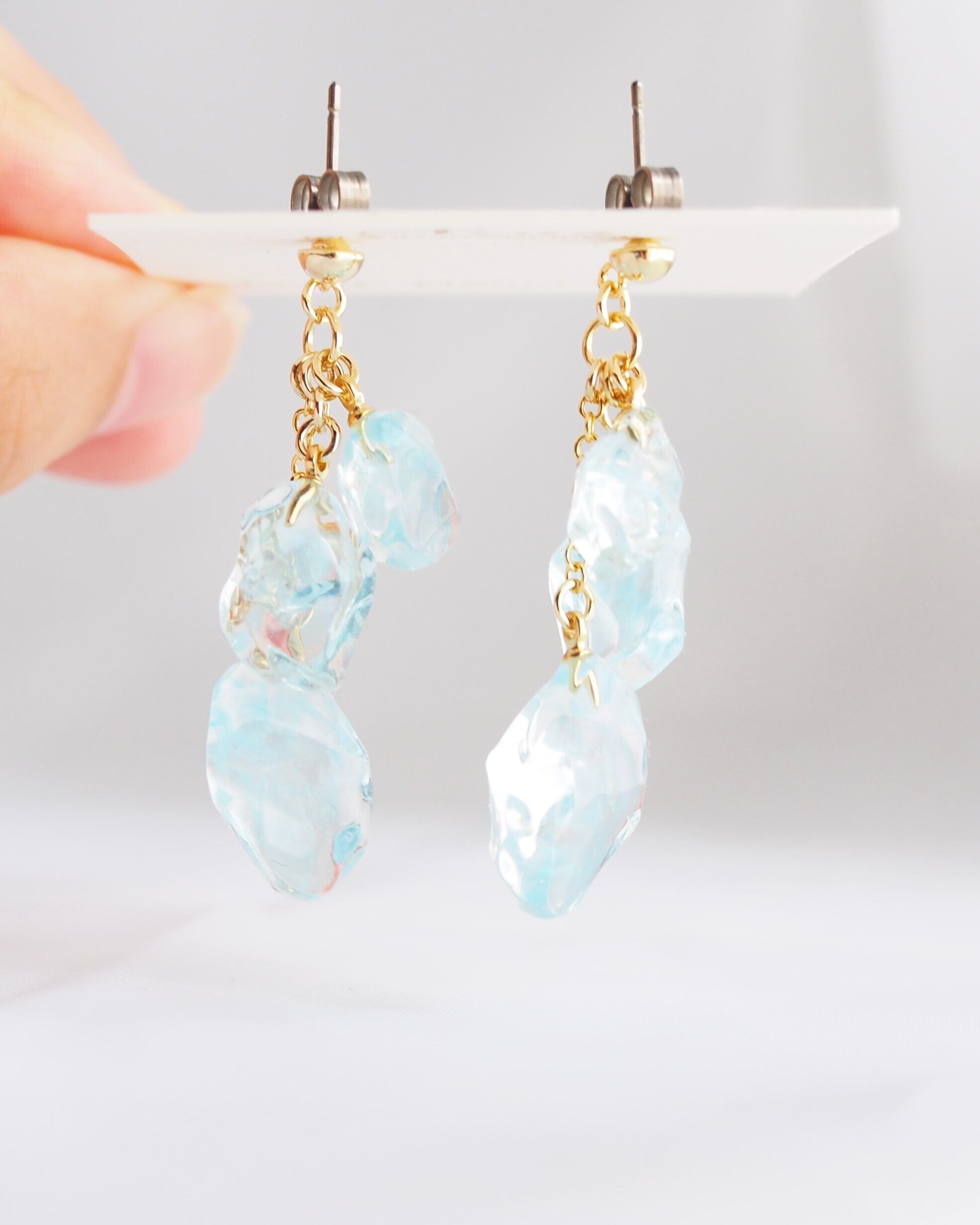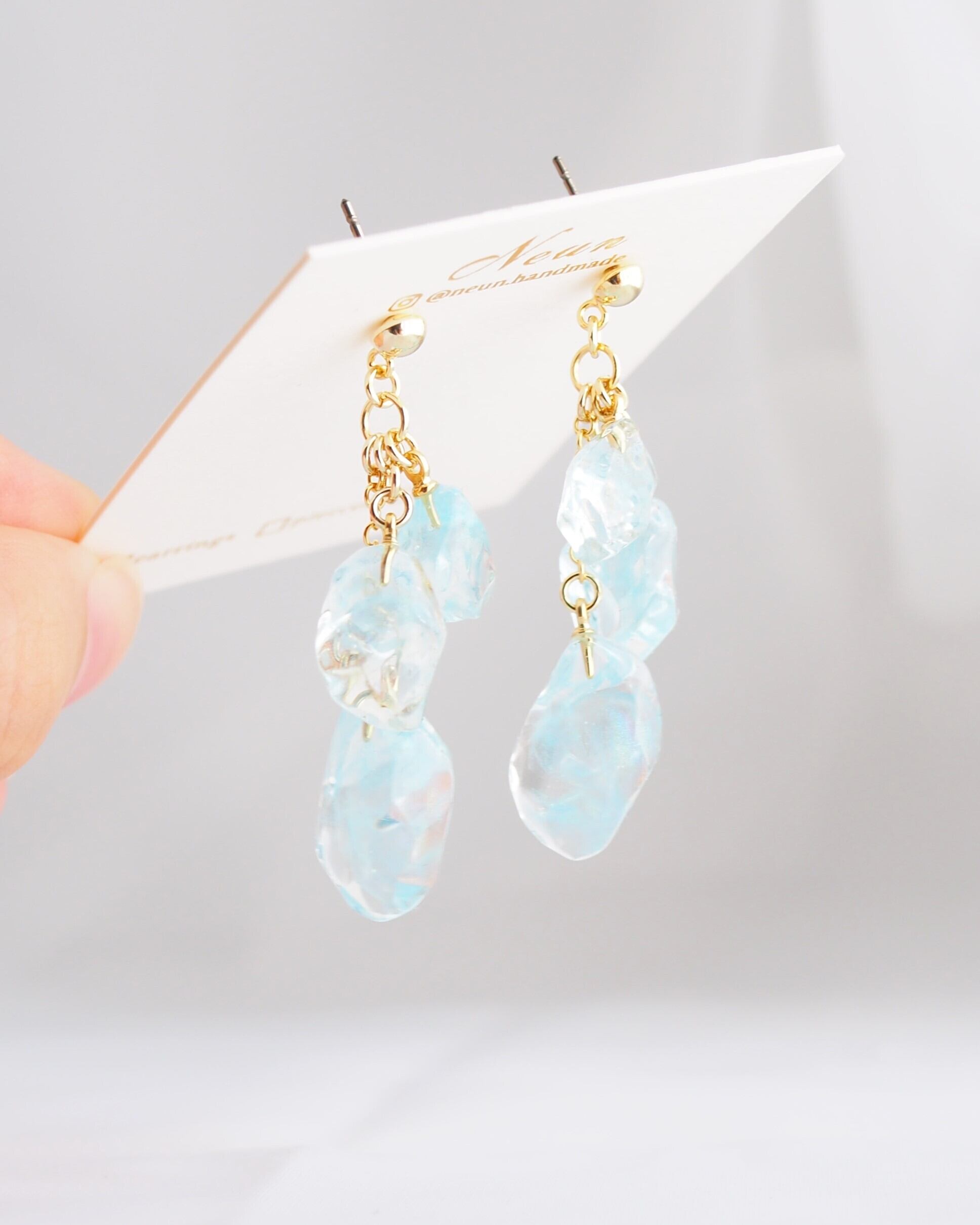 透明の中に繊細なラメを含んだ水色を溶かしたレジン鉱石。