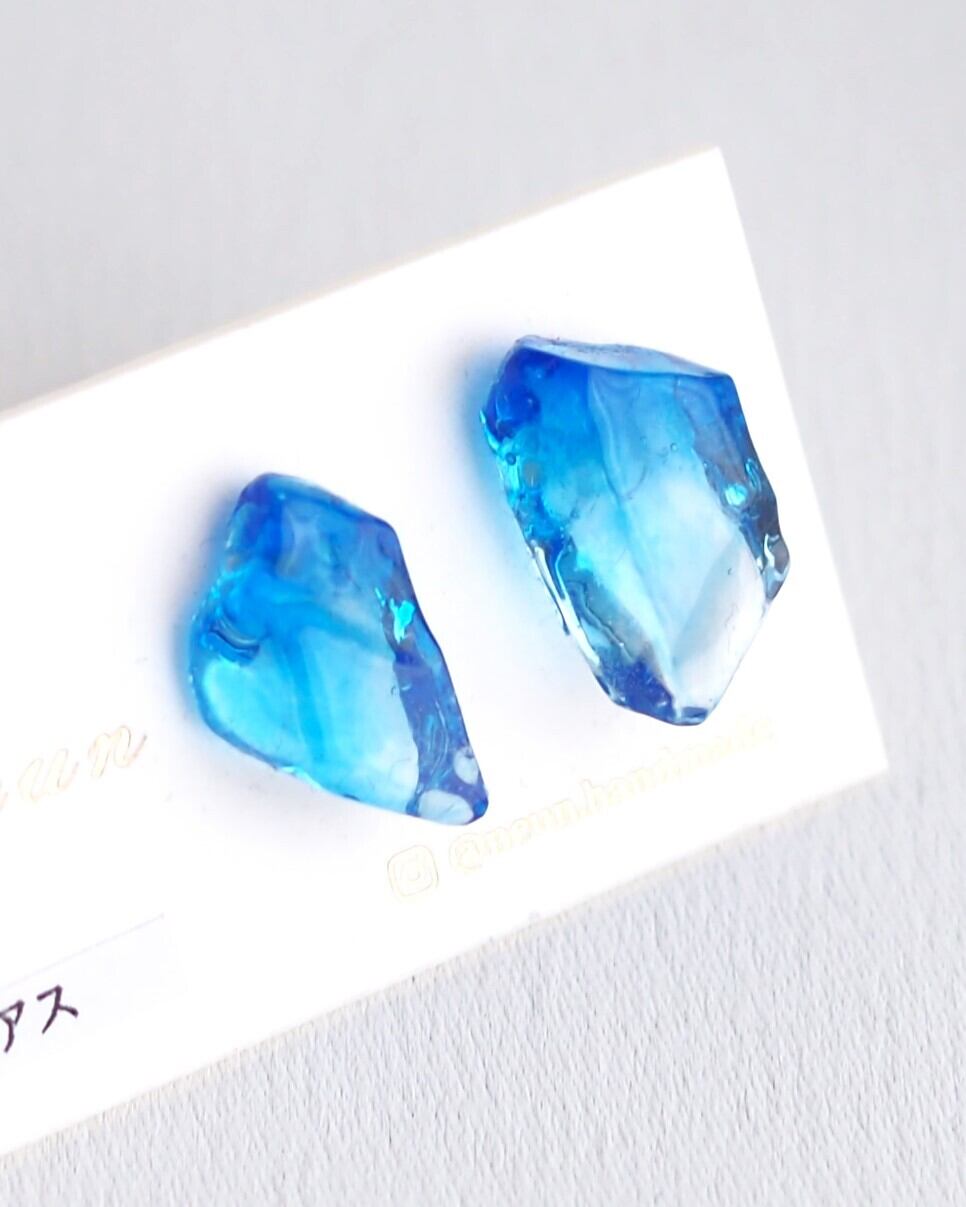 海をイメージした青とクリアを緩やかにグラデーションさせた、鉱物のようなシンプルなデザイン